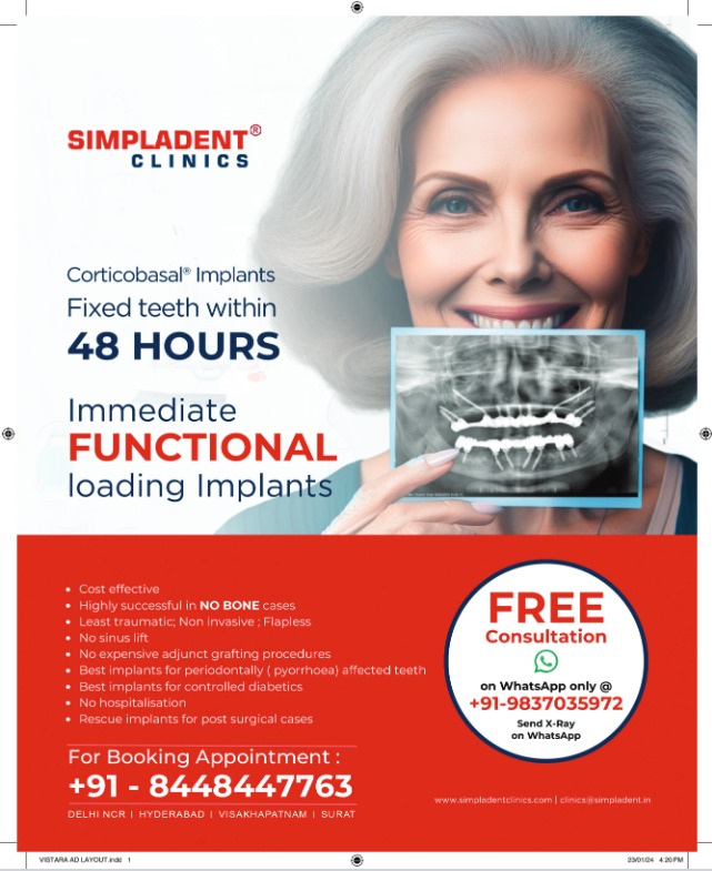 Delhi NCR, Surat, Hyderabad, Visakhapatnam, 9th May 2024- Simpladent Immediate Loading Dental Implants have emerged as a preferred choice for dental restoration among patients worldwide. Renowned for their efficacy and efficiency, these implants have garnered significant popularity across diverse age groups and challenging dental conditions. Here are five compelling reasons why Simpladent Immediate Loading Dental Implants have become a cornerstone of modern dentistry: