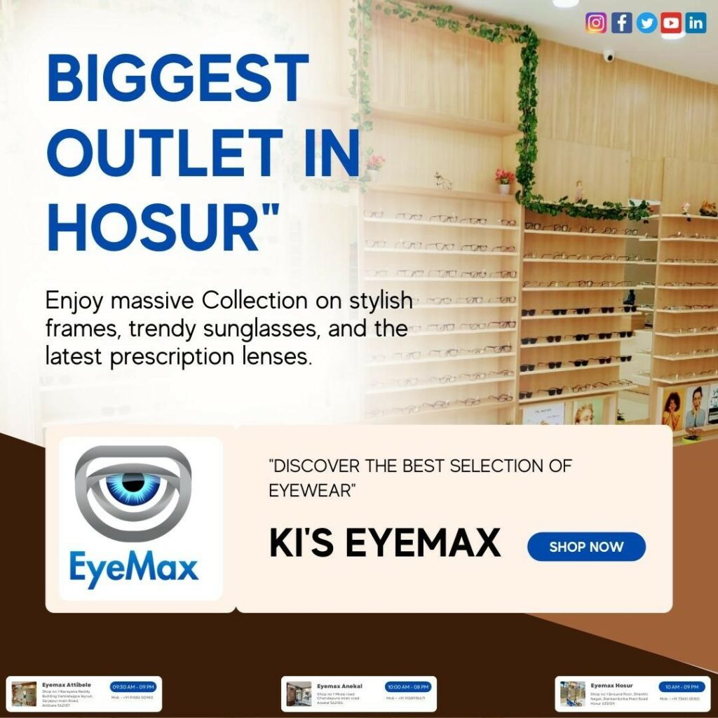 Are you looking for a wide range of high-quality eyewear options in Hosur? Look no further than Ki’s Eye Max, the biggest eyewear outlet in town.
