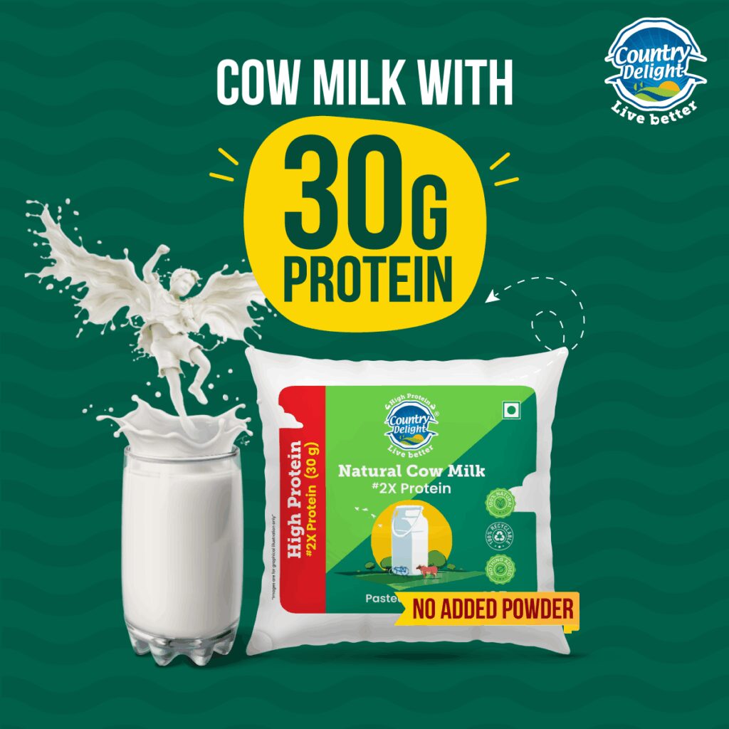 Priced at Rs. 41 for a 450ml pack, Country Delight’s High Protein Cow Milk is available exclusively through the Country Delight app.