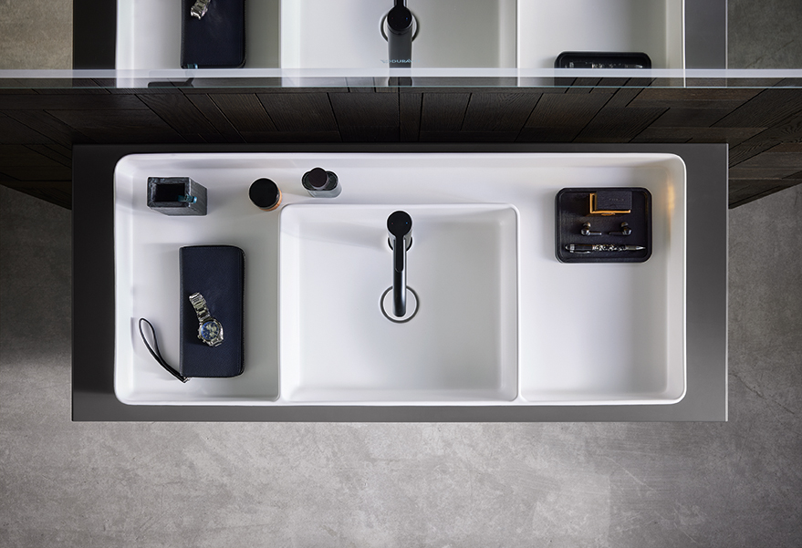 Arranged like a Japanese lunchbox: with the new Duravit Bento Starck Box bathroom series, Duravit and designer Philippe Starck are making an extraordinary design statement to meet the most exacting architectural demands. Inspiration is drawn from the traditional Japanese bento boxes that are subdivided into several internal compartments by separators. “The Bento Starck Box collection is the start of an elegant serenity,” said Starck, describing the washbasins and bathtubs of the series. With intelligently divided wet and dry areas, the clean, clearly structured washing areas and bathtubs open up countless options for personal design.