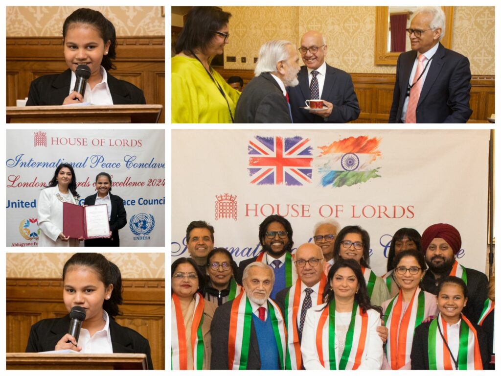 London, 1 May, 2024 – The United Nations Global Peace Council (UNGP) convened a momentous event today at the iconic Palace of West Minister, known colloquially as the House of the Lords or the London Parliament, to bestow upon Miss Kalasha Naidu the esteemed title of “Globally the Youngest Social Worker.” The ceremony, held at 15:30 GST, saw Miss Naidu being recognized for her outstanding contributions to public service on an international scale.