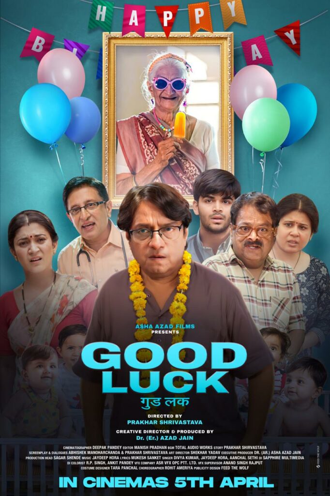 The poster for the upcoming film “Good Luck”is out today, starring veteran actor Brijendra Kala and directed by Prakhar Shrivastav. Produced by Dr.(Er.) Azad Jain under the banner of Asha Azad Films, the movie promises a satirical take on the social media age with a heartwarming story at its core. “Good Luck” is set to hit theaters nationwide on April 5, 2024.