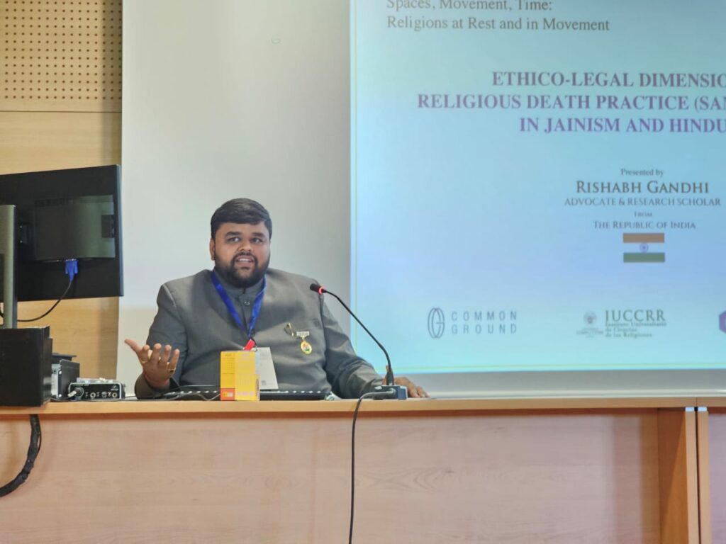 Indian lawyer and research scholar Rishabh Gandhi presented a thought-provoking talk at the Fourteenth International Conference on Religion & Spirituality in Society, held at the Universidad Complutense Madrid. His presentation, titled “Ethical Legal Dimensions Of Religious Death Practice of Samadhimaran in Jainism And Hinduism,” provided a detailed analysis of the historical, ethical, and legal aspects of these ancient practices.