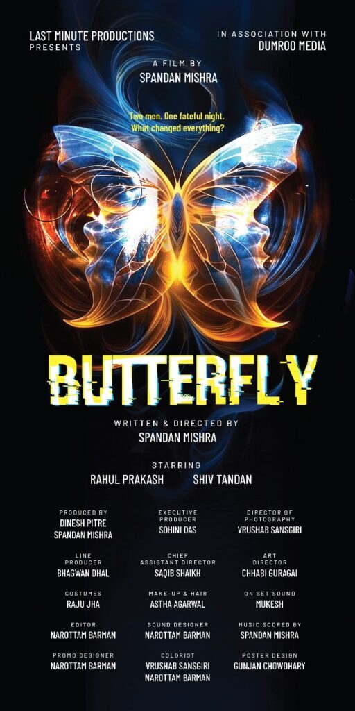 “Butterfly” features the talents of actors Shiv Tandan and Rahul Prakash. With only two individuals on screen, the film promises an intimate and thought-provoking experience regarding 2 friends from college days, and how their lives have diverged over the years, while asking a very tantalizing, “what if…” at the end. The short film is sure to reel you in, and make you want to see more of the story, to find out the various factors that led here, as well as what could possibly happen next, as the credits roll.