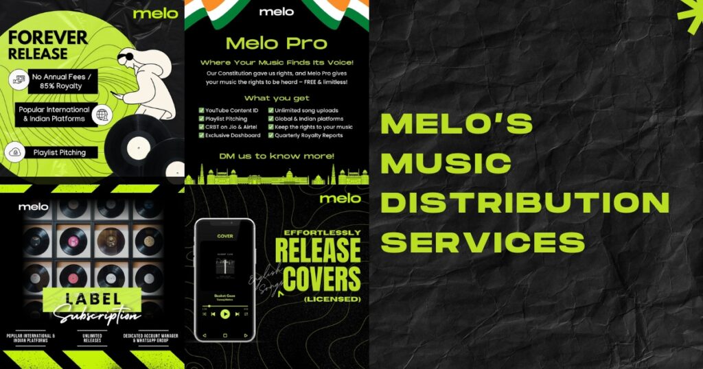 Melo taps into a vast global network of major international, Indian, and caller tune platforms, ensuring that music reaches listeners across diverse markets. For additional security and monetization, the platform also provides fingerprinting services on Instagram, Facebook, and YouTube—protecting content and securing rightful earnings.