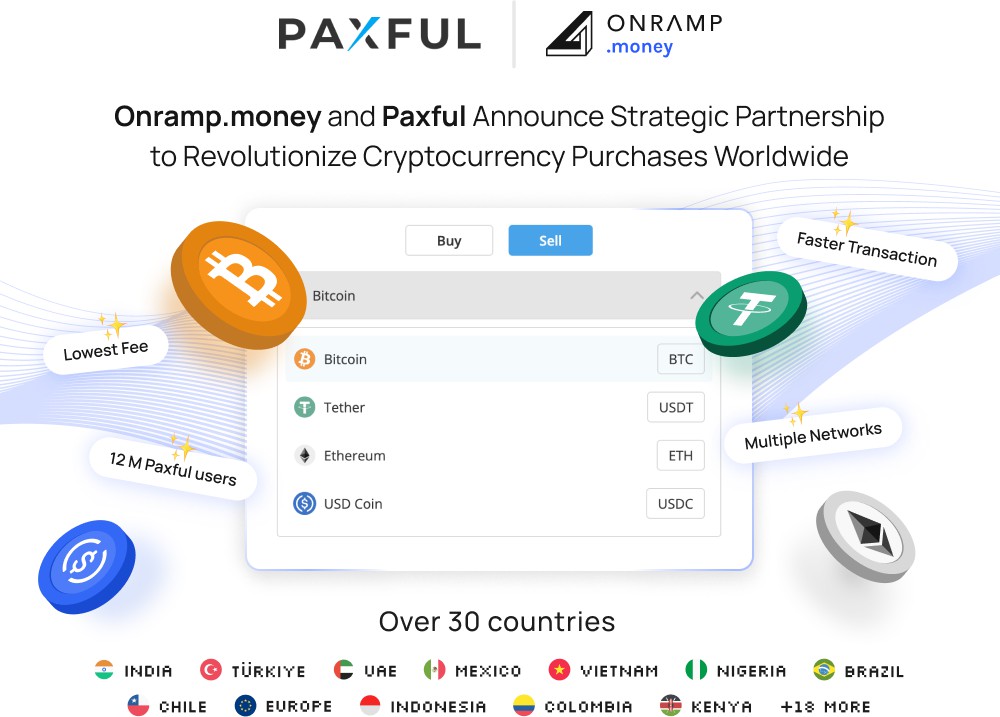 Through this partnership, Onramp Money will integrate directly with Paxful, enabling users from India, Turkey, UAE, Mexico, Chile, Colombia, Peru, Brazil, Nigeria, Kenya, South Africa, Indonesia, Vietnam, Malaysia, and Europe to effortlessly purchase cryptocurrencies such as USDT, USDC, BTC, and ETH using their local fiat currencies via bank transfers.