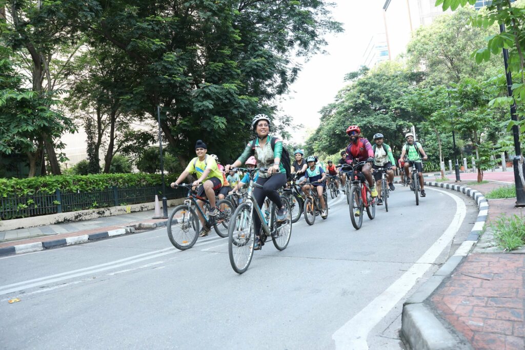 The event commenced with a symbolic cycle ride from Kalina University to Sofitel BKC, which was flagged off by Dr Manoj Reddy – Director of Physical Education Department, University of Mumbai. The rally was led by dignitaries and enthusiastic cyclists, showcasing cycling as a healthy, sustainable, and practical mode of transport. Key highlights included the launch of the Road Safety Awareness Campaign (A.S.A.P.) and Cycle Bus Initiatives, interactions with Mumbai’s newly appointed Bicycle Councillors 2.0 representing all 24 wards, and recognition of contributions toward clean mobility and urban sustainability. The morning concluded with a breakfast and networking session, fostering collaboration among stakeholders dedicated to building a resilient Mumbai.