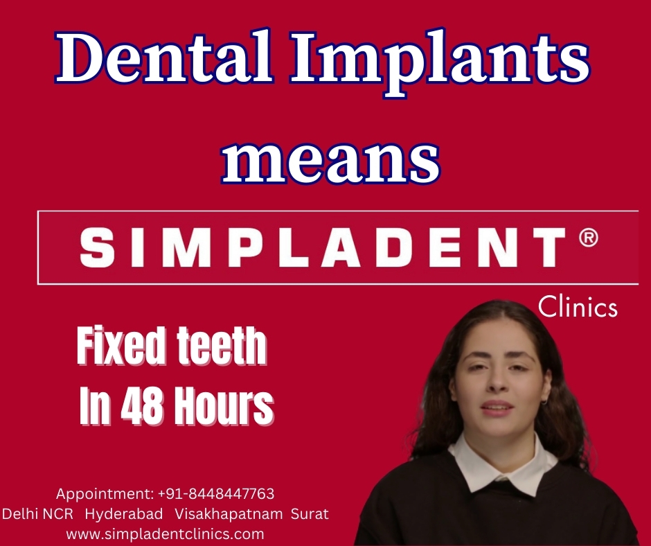 Simpladent Clinics is a leading provider of dental implant solutions pioneering Immediate Loading Dental Implants which means world quality dental implants in 48 hours dedicated to restoring smiles and transforming lives through innovative and personalized treatment approaches. With a team of highly skilled professionals and state-of-the-art facilities, Simpladent Clinics offers comprehensive dental implant services tailored to meet the unique needs of each patient. Experience the difference with Simpladent Clinics and unlock the true potential of your smile.