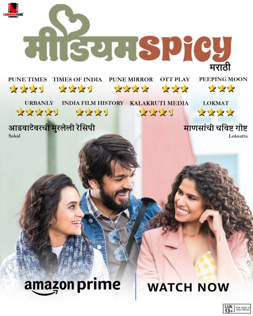 Indulge in the delightful experience of watching Vidhi Kasliwal’s globally recognised ‘Medium Spicy’, an enthralling Marathi film produced by Landmarc Films, on OTT! Released in theatres last year, this captivating narrative delves into the complexities of relationships, with the lead roles skilfully portrayed by Sai Tamhankar, Lalit Prabhakar and Parna Pethe. Fans eagerly awaited its arrival on the OTT platform, and their wait has finally borne fruit with this Prime Video release.